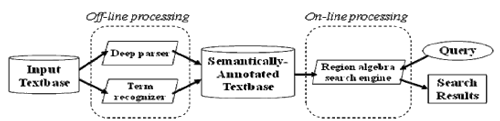 This section describes MEDIE (Figure 1), a system for the accurate real-time retrieval of relational concepts from MEDLINE (Miyao et al. 2006). This system consists of the off-line processing to compute semantic structures and the on-line processing to search for semantic structures that match a user’s query (Figure 2).